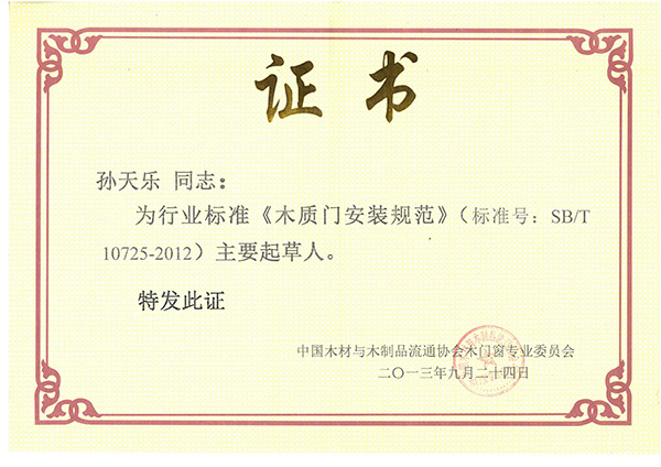 《木質(zhì)門安裝規(guī)范》標(biāo)準(zhǔn)主要起草人