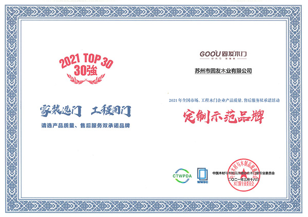 2021產(chǎn)品質(zhì)量、售后服務(wù)雙承諾匠心定制品牌