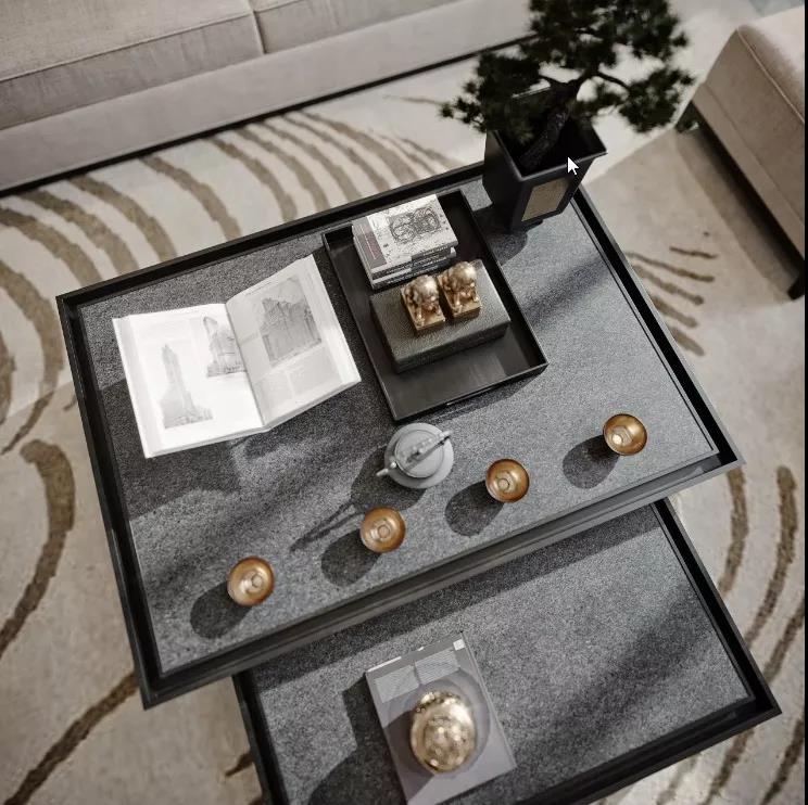 從整體布局可以看出清雅恬淡、沉穩(wěn)大氣的主調(diào),簡潔對稱的格局,動(dòng)靜分離的區(qū)域,調(diào)融和諧的色彩,在如此格局的空間里,無疑能夠卸下沉重的心理負(fù)擔(dān)。從細(xì)節(jié)高山流水的引入,到山紋大地的色彩,極具東方韻味。有助于人們平息內(nèi)心的悸動(dòng)、整理心緒。